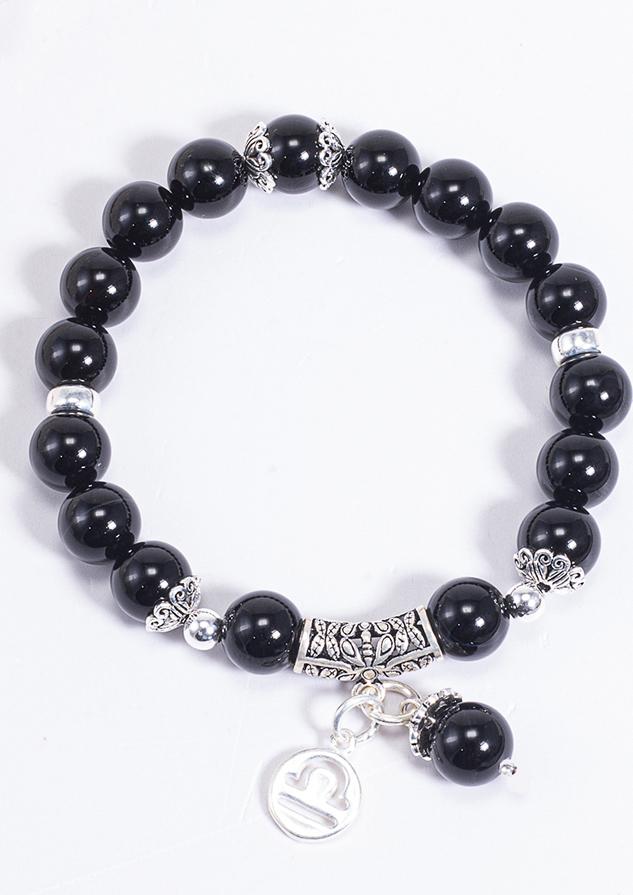 Vòng Tay Phong Thủy Đá Obsidian Phối Charm Cung Hoàng Đạo Thiên Bình (8mm) Mệnh Thủy, Mộc
