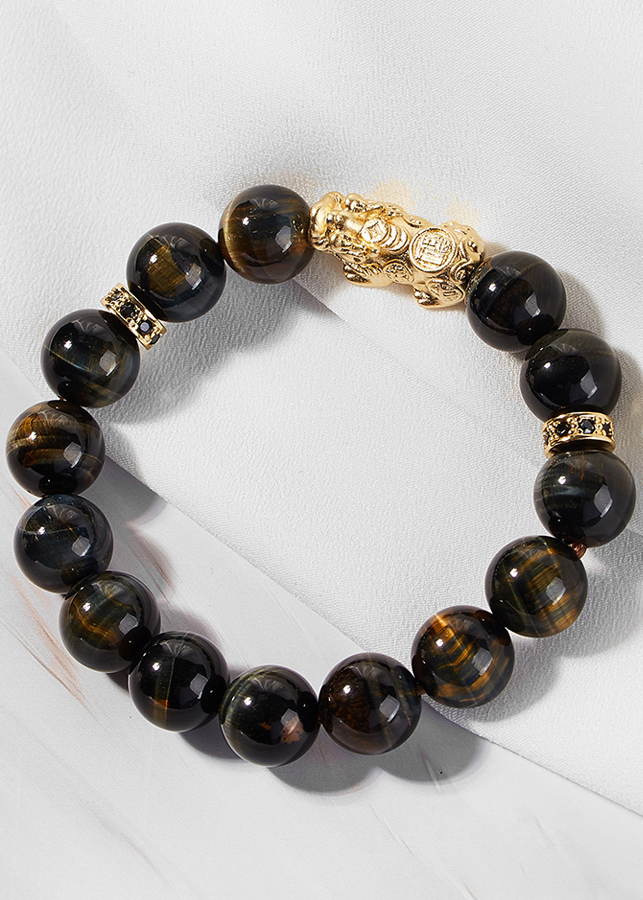 Vòng Thạch Anh Mắt Hổ Phối Tỳ Hưu Bạc Bọc Vàng 24K