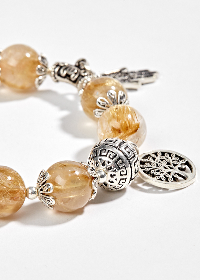 Đeo Vòng Thạch Anh Tóc Vàng Phối Charm Túi Tiền Bạc (11mm) Ngọc Quý Gemstones giúp gia tăng khả năng tập trung trí óc, thúc đẩy hoạt động năng nổ, rất thích hợp với người làm việc kinh doanh, nghiên cứu khoa học và sáng tạo.