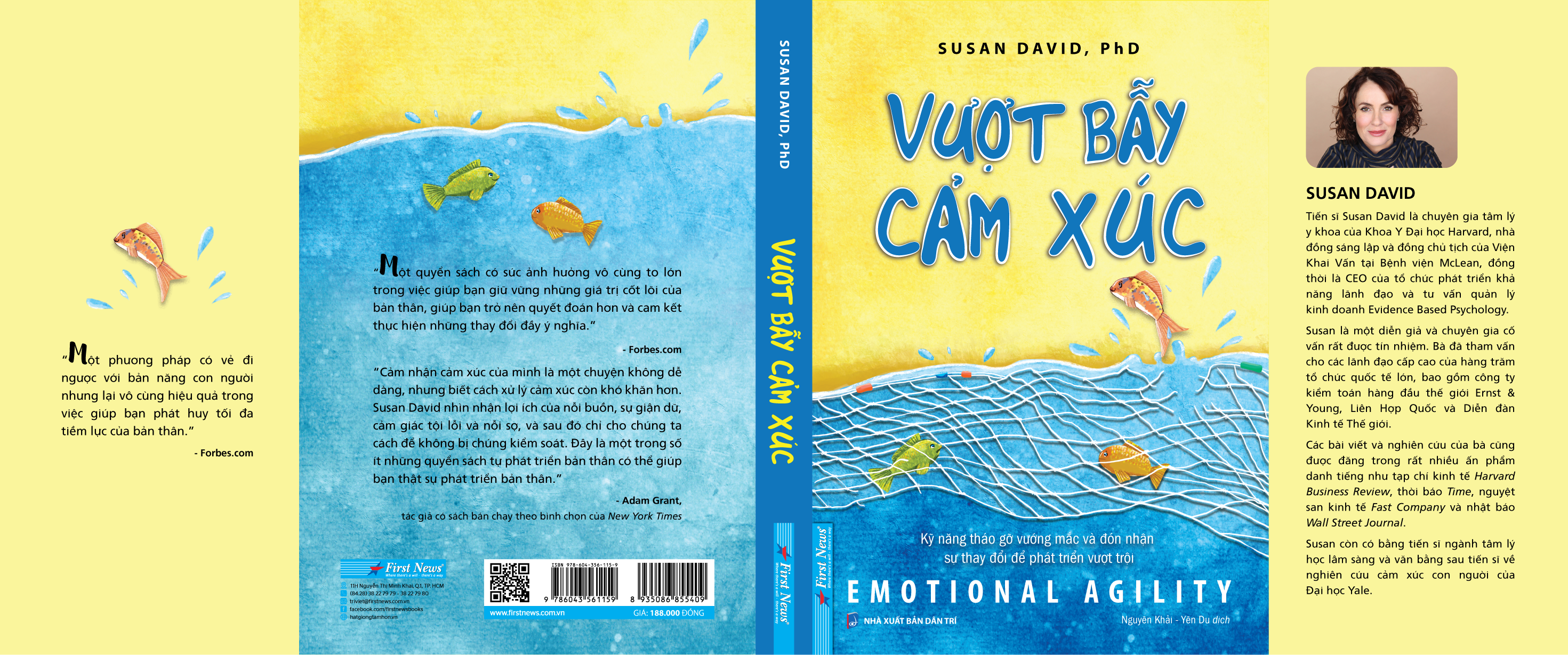 - Biến cảm xúc khó chịu thành nguồn năng lượng và ngọn hải đăng chỉ đường - Lo lắng. Bất an. Xấu hổ. Chán nản. Hoài nghi. Buồn bã. Cô đơn. Khi có một cảm xúc tiêu cực như vậy dấy lên trong lòng, bạn thường sẽ phản ứng ra sao? Có người bị cuốn theo cảm xúc để rồi hành động bộc phát. Có người ngay lập tức gạt phăng cảm xúc qua một bên, coi chúng như vật cản đường. Số khác để mình sa lầy trong cảm xúc, đắm chìm trong u ám. Có người thì để cảm xúc tiêu cực dẫn dắt đến những quyết định thiếu chín chắn. Các kiểu phản ứng nói trên đều không lành mạnh. Chúng cứng nhắc và thiếu sáng suốt, nhưng lại rất bản năng, chúng hoàn toàn tự động và đầy cám dỗ, giống như những chiếc “móc câu” khiến bạn dễ dàng mắc vào rồi “chật vật vùng vẫy như cá sắp bị lên thớt”, như chuyên gia tâm lý Susan David ví von. Với hơn 20 năm nghiên cứu về cảm xúc, vị chuyên gia tâm lý đến từ Khoa Y của Đại học Harvard sẽ chỉ dẫn bạn đọc cách đón nhận cảm xúc linh hoạt và sáng suốt hơn thông qua cuốn sách “Vượt bẫy cảm xúc” (tựa gốc: “Emotional Agility”). Khi cầm cuốn sách này trên tay, bạn sẽ có được một quy trình “ứng phó linh hoạt với cảm xúc” mà trong đó, bước đầu tiên là nhận biết cảm xúc, sau đó là tách rời cảm xúc ra khỏi bạn. Hay nói như Susan, bạn cần “mở ra một khoảng không gian giữa những gì bạn cảm nhận và phản ứng của bạn với những cảm nhận đó”. Theo tác giả, việc “thoát ly” khỏi cảm xúc sẽ giúp bạn nhận ra mình có nhiều lựa chọn hơn so với khi cứ bám theo khuynh hướng xử lý cảm xúc một cách cứng nhắc. Sau khi giúp bạn thoát khỏi những chiếc “móc câu” cảm xúc tai hại, ở phần sau của quy trình, Susan hướng dẫn cách bạn hoà hợp suy nghĩ và cảm xúc với các giá trị, mục tiêu dài hạn và khát vọng của mình. Không những vậy, bà còn chỉ ra những chiếc “bẫy” cảm xúc phổ biến trên hành trình xây dựng cuộc sống như mong muốn, và cho chúng ta biết năng lực “linh hoạt cảm xúc” quan trọng như thế nào trên hành trình đó. Susan David tin rằng thay vì để cảm xúc khó chịu làm bạn chệch khỏi mục tiêu đã định, bạn hoàn toàn có thể đón nhận chúng “như một nguồn cung cấp năng lượng, sự sáng tạo và sự thấu hiểu”, và như ngọn hải đăng chỉ đường để hướng bạn về phía những khát khao cháy bỏng nhất của mình. “Mục tiêu cuối cùng của sự linh hoạt trong cảm xúc là giúp bạn có thể nhận ra và vững vàng đón nhận thử thách cũng như nắm bắt các cơ hội phát triển trong suốt hành trình cuộc đời mình”, Susan David viết. “Vượt bẫy cảm xúc” có nội dung cô đọng, khoa học nhưng không khô khan, chứa đầy những câu chuyện và nghiên cứu tâm lý thú vị. Cuốn sách từng lọt vào top 1 danh sách những cuốn sách bán chạy của Wall Street Journal, đạt danh hiệu cuốn sách của năm (Best Book of the Year) trên Amazon. Đây là một tác phẩm cần thiết cho bất cứ ai gặp khó khăn với cảm xúc, đặc biệt là những độc giả đang trong chặng đường đầu tiên của hành trình sống hoà hợp với chính mình. Báo chí và người nổi tiếng nói gì về “Vượt bẫy cảm xúc”? “Một phương pháp có vẻ đi ngược với bản năng con người nhưng lại vô cùng hiệu quả trong việc giúp bạn phát huy tối đa tiềm lực của bản thân” - F “Susan David nhìn nhận lợi ích của nỗi buồn, sự giận dữ, cảm giác tội lỗi và nỗi sợ, và sau đó chỉ cho chúng ta cách để không bị chúng kiểm soát” - Adam Grant, tác giả của Originals, Give and Take. “Susan David dạy chúng ta hiểu và giao tiếp thứ ngôn ngữ không lời của cảm xúc. Đây là một cuốn sách vô cùng có ý nghĩa” - Susan Cain, tác giả của Quiet. Về tác giả Susan David là chuyên gia tâm lý y khoa của Khoa Y Đại học Harvard, nhà đồng sáng lập và đồng chủ tịch của Viện Khai vấn tại Bệnh viện McLean, CEO của tổ chức tư vấn quản lý kinh doanh Evidence Based Psychology. Các bài viết và nghiên cứu của bà đã được đăng trên The New York Times, Harvard Business Review, Washington Post, Wall Street Journal, Time. Ngoài ra, bà còn là diễn giả và nhà tư vấn, có kinh nghiệm tham vấn với lãnh đạo cấp cao của Google, Microsoft, Diễn đàn Kinh tế Thế giới, Liên hợp quốc… Susan có bằng tiến sĩ ngành tâm lý học lâm sàng và văn bằng sau tiến sĩ về nghiên cứu cảm xúc con người của Đại học Yale.
