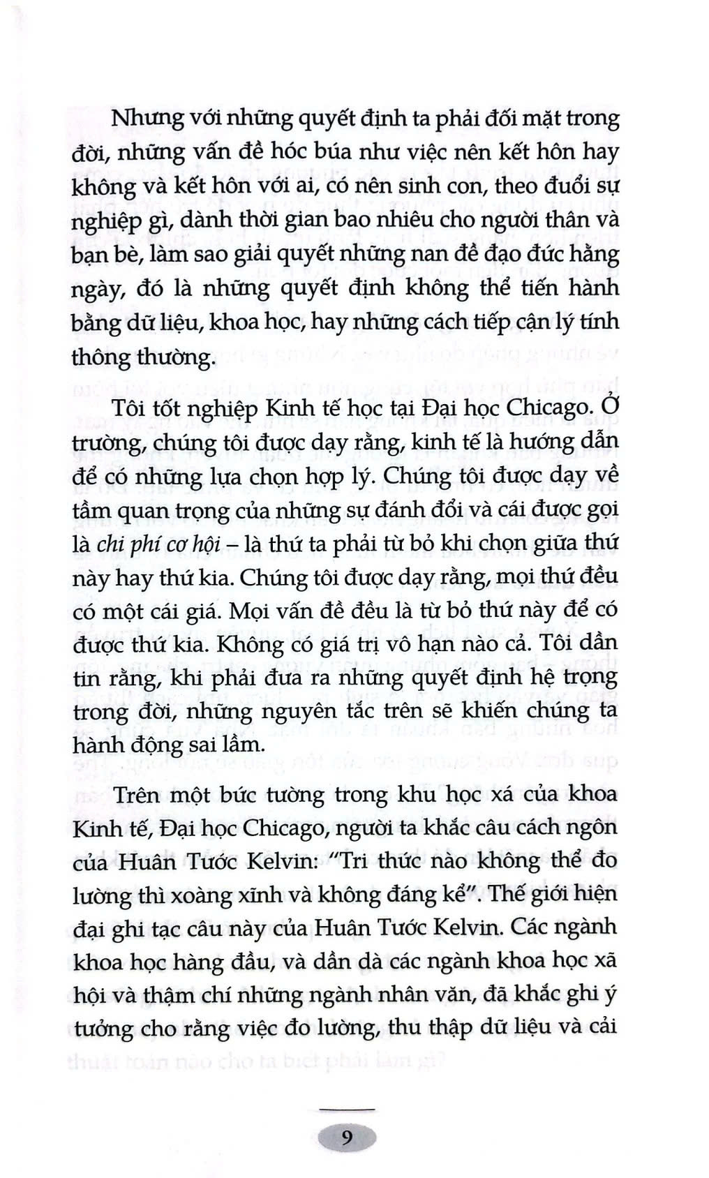 - Emily Oster, tác giả cuốn Expecting Better Bạn sẽ làm gì khi phải đối mặt với những quyết định trọng đại trong cuộc đời? Có vô số vấn đề nan giải, gây băn khoăn. Chẳng hạn, “Nên chọn người nào để kết hôn?”, “Nên sinh con hay không?”, “Có nên chuyển chỗ ở?”, “Đổi việc làm?”, “Làm thế nào để có cuộc sống tốt đẹp?”,... Đó là những điều không thể quyết định bằng cách đo lường hoặc tính toán. DÁM QUYẾT ĐỊNH của Russ Roberts trình bày những phương pháp hợp lý, nhằm giải quyết các vấn đề nêu trên. Tuy nhiên, điểm thú vị trong cuốn sách này là cái nhìn đầy tươi mới và lạc quan của tác giả. Ông nhắn nhủ với độc giả rằng, đừng nhìn cuộc sống như một nơi đầy rẫy vấn đề cần giải quyết, mà hãy xem nó như nơi chốn bí ẩn cần trải nghiệm. Không có quyết định duy nhất đúng nào có sẵn để bạn bước tới và nắm lấy, vì vậy hãy mạnh dạn bước vào thực tại để nhận ra những điều thú vị trên mỗi bước đường bạn trải qua.
