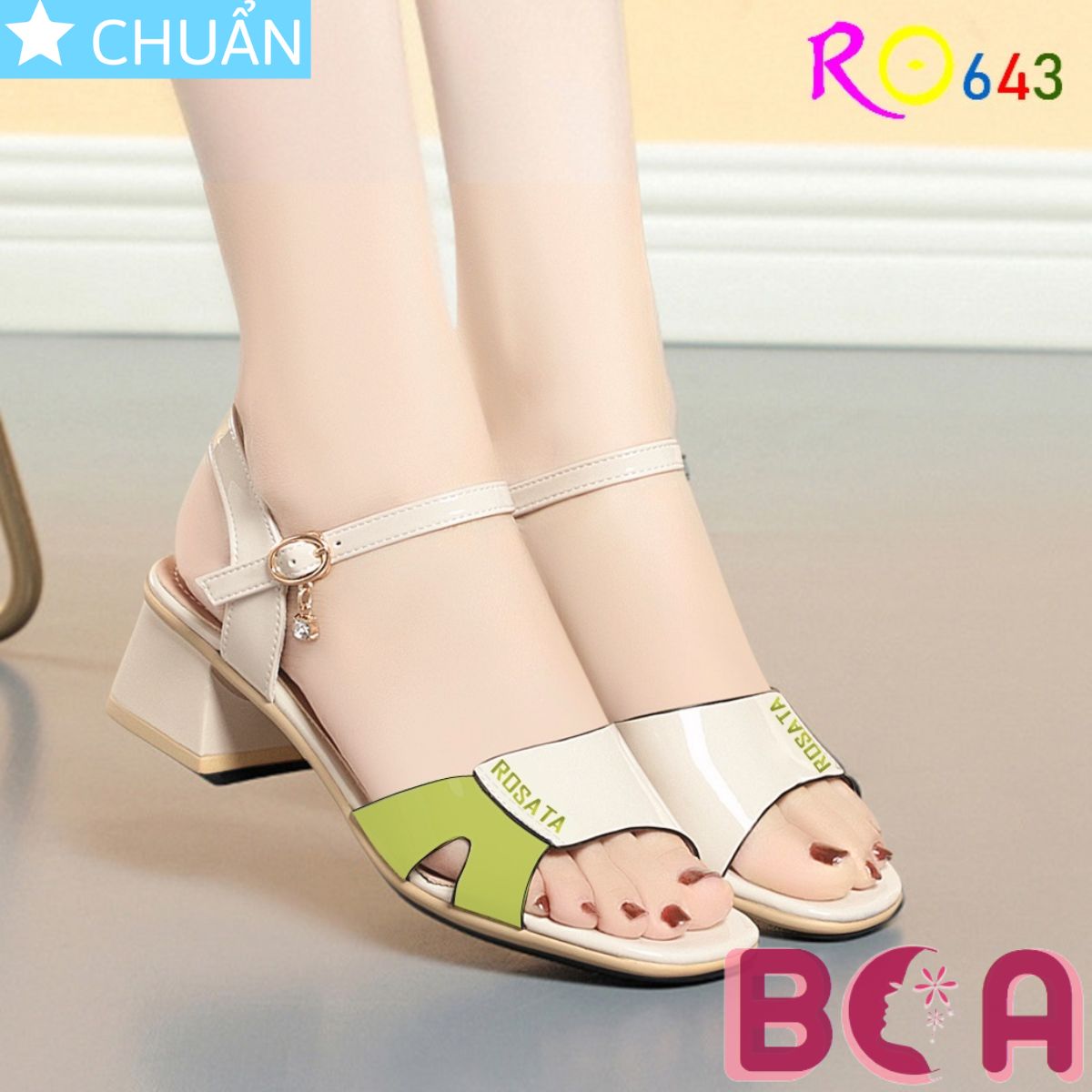 ✨Xăng đan nữ hở mũi đế thấp 4 phân RO643 ROSATA tại BCASHOP quai sau cài xinh xắn, phối màu tinh tế rất tôn da, thoải mái