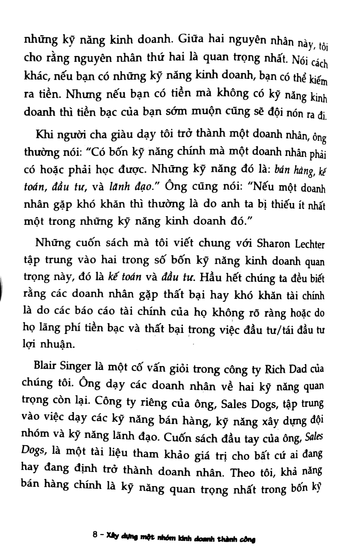 Xây Dựng Một Nhóm Kinh Doanh Thành Công của tác giả Blair Singer là một cuốn sách hữu ích về việc xây dựng và lãnh đạo nhóm kinh doanh hiệu quả. Tác giả chia sẻ những chiến lược và bí quyết thực tiễn, nhấn mạnh tầm quan trọng của việc tạo ra một môi trường làm việc tích cực, khuyến khích tinh thần đồng đội và sự sáng tạo. Thông qua các câu chuyện thực tế và bài tập thực hành, Blair Singer hướng dẫn cách khai thác điểm mạnh của từng thành viên, xây dựng lòng tin và sự tôn trọng, giúp nhóm đạt được mục tiêu kinh doanh và phát triển bền vững.