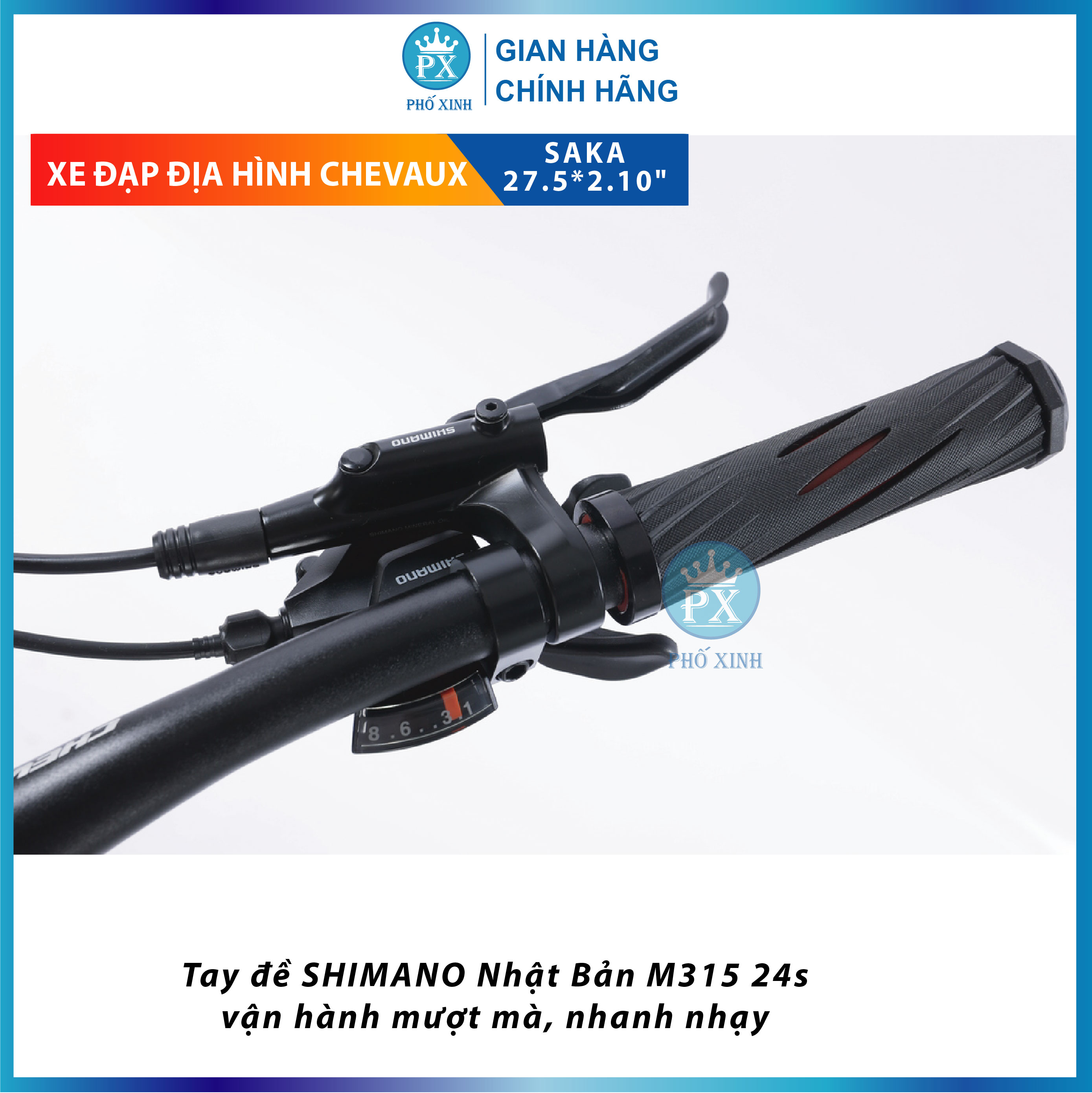 XE ĐẠP CHEVAUX SAKA Xe đạp Chevaux Saka là mẫu xe địa hình băng đồng với nước sơn tĩnh điện cao cấp và theo phong cách ombre đầy ấn tượng, cá tính. Đây là một “ngựa chiến” hoàn hảo cho những ai muốn bước chân vào thế giới của những cung đường hoang dã, và cần một chiếc xe leo núi thực thụ với mức giá hợp lý. Thông số kỹ thuật Model CHEVAUX SAKA Đùi đĩa S H I M A N O Nhật Bản 3 tầng, 42/34/24T Size 17 Trục giữa Cốt vuông, bạc đạn Trọng lượng 15.2kg Đùm Joytech Đài Loan Tem kiểm định BAA Nhật Bản Phanh Dầu thủy lực S H I M A N O Nhật Bản Khung Khung nhôm 6061 siêu nhẹ, không mối hàn Sơn tĩnh điện cao cấp, phong cách ombre hiện đại, ấn tượng Phuộc Phuộc dầu CHEVAUX có khóa hành trình Xích KMC Lốp KENDA 27.52.10" Tay đề S H I M A N O Nhật Bản M315 24s Vành Nhôm CHEVAUX 2 lớp 27.5 Củ đề S H I M A N O Altus M310 8s Nhật Bản Yên Yên thể thao siêu mềm CHEVAUX Gạt đĩa S H I M A N O Tourney 3s Nhật Bản Pô tang/ Ghi đông/ Cọc Yên Nhôm CHEVAUX Líp S H I M A N O HG200 - 8 tầng, 12-32T Khung sườn nhôm cao cấp T6 (ALU6061) Khung sườn của dòng xe này có chất liệu từ hợp kim nhôm cao cấp cứng cáp T6, chắc chắn và trọng lượng nhẹ. Chiếc xe này phù hợp với các bạn trẻ có chiều cao khoảng 1m55 – 1m8. Lớp sơn tĩnh điện cao cấp giúp xe luôn trong trạng thái sáng bóng như mới, dễ dàng vệ sinh khi bám bẩn, khó bong tróc. Ghi đông tay ngang, tay nắm da mềm mại chắc tay Mẫu xe city bike này sở hữu ghi đông dạng thẳng cổ điển, dễ sử dụng, không chỉ đem lại cho xe bề ngoài gọn và đẹp mắt mà còn giúp xe dễ dàng di chuyển vào những con đường gồ ghề, dốc cao An toàn di chuyển với bánh xe có nhiều gai Chiếc xe đạp này được trang bị bánh xe vơi lốp xe KENDA 27.52.10". Ngoài ra, với vành xe là hợp kim nhôm 2 lớp Chevaux cứng cáp và nhiều gai, người dùng có thể yên tâm di chuyển trên những đoạn đường trơn trượt. Bộ đề S h i m a n o mạnh mẽ Bộ truyền động S H I M A N O Nhật Bản M315 24s vận hành mượt mà, mạnh mẽ với 24 tốc độ giúp cho việc sang số trở nên dễ dàng và mượt mà, bộ líp  S H I M A N O HG200 - 8 tầng, 12-32T bền bỉ, kết hợp với Gạt đĩa S H I M A N O Tourney 3s Nhật Bản cho khả năng vận hàng êm ái, dễ chịu, mang đến cho bạn sự an tâm và thoải mái khi trải nghiệm những cung đường mà bạn yêu thích. Phanh đĩa dầu hoạt động an toàn, nhạy bén  S  h i m a n o hoạt động hiệu quả giúp người dùng dễ dàng điều chỉnh và kiểm soát tốc độ trên suốt chuyến hành trình của mình. Đảm bảo an toàn cho bản thân và những người xung quanh.  thoải mái Yên được làm nệm mút cao cấp, êm ái. Cọc yên hợp kim chắc chắn mang lại cảm giác thoải mái cho người đạp xe khi di chuyển những cung đường dài, gập ghềnh.  Bên cạnh vẻ ngoài năng động, xe đạp thể thao đường phố Chevaux Toto còn sở hữu dàn cấu hình rất chất lượng và một mức giá rất tốt, đảm bảo tính ổn định, vững chãi để người dùng có thể vi vu dạo mát, đi học, đi làm mỗi ngày. Đây chắc chắn là mẫu xe tuyệt vời dành cho các bạn trẻ thích vu vi dạo phố, đi làm, đi học, leo núi rèn luyện sức khỏe. TẠI SAO NÊN MUA XE ĐẠP TẠI PHỐ XINH? CỬa hàng Phố xinh là NPP xe đạp cho các thương hiệu hàng đầu như Giant, TWITTER, Califa Catani, Vicky, Chevaux, Calli, Catani… Phố Xinh không chỉ bán sản phẩm, chúng tôi muốn làm tốt hơn qua 04 việc sau: Hướng khách hàng đến lựa chọn phù hợp nhất Có trách nhiệm đảm bảo sản phẩm đến tay khách hàng là c  h í n h h ã n g. Tiết kiệm chi phí cho khách hàng qua việc tối ưu chuỗi cung ứng. Tiếp thu nhanh và xử lý đến cùng các sự cố về SP  #xedap #xediahinh #xedaptreem #xeđạp #xeđạpvicky #vicky #catani #xeđạp22 #xeđạpchobé3tuổi