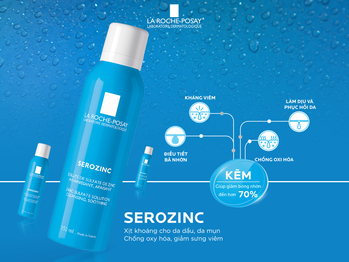 - Xịt Khoáng Giúp Làm Sạch Và Dịu Da La Roche-Posay Serozinc (150ml) dành riêng cho da dầu, da mụn chứa thành phần Kẽm (Zinc) có tác dụng chống oxy hóa, điều tiết bã nhờn, giảm