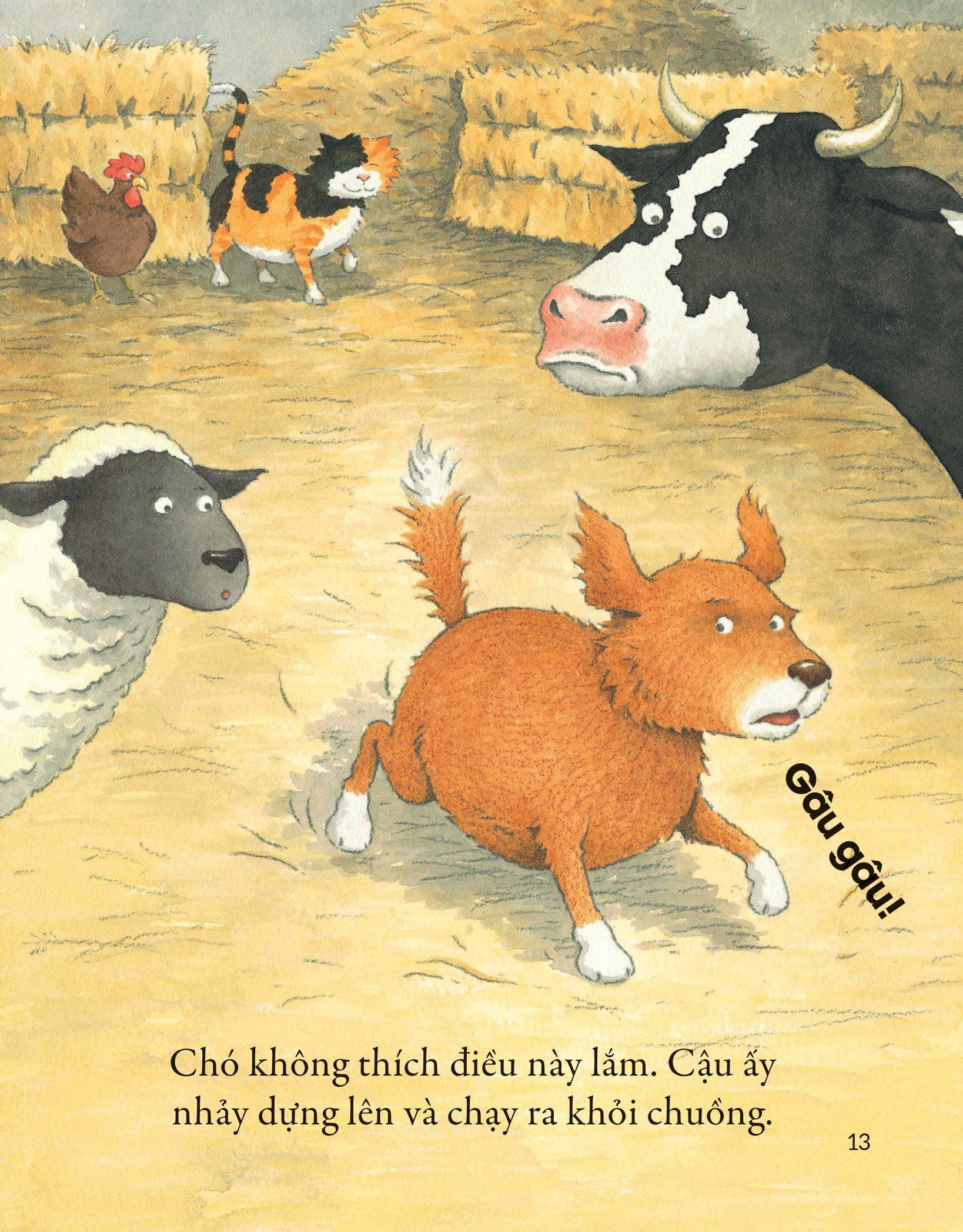 Lợn Mẹ và đàn Lợn Con cùng Chó, Bò, Cừu và Mèo đều ở trong chuồng.