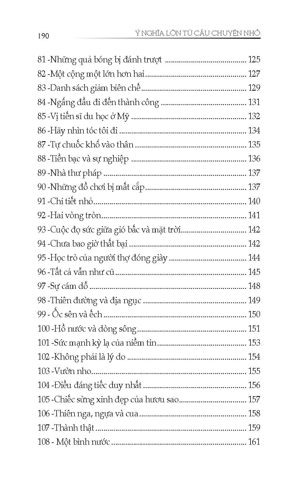 Cuốn sách là tập hợp những câu chuyện nhỏ được tích góp, vun bồi qua nhiều năm tháng cuộc đời tác giả trên con đường trở thành một doanh nhân thành đạt và một người